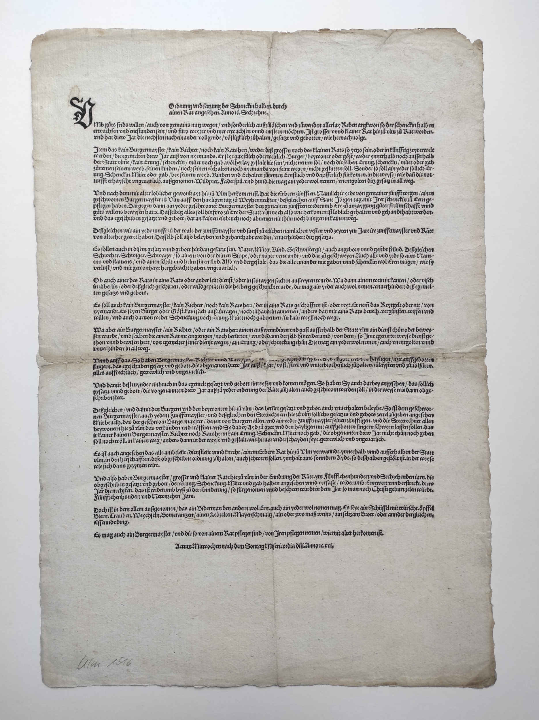 Ulm, ohne Drucker, Actum Mitwochen nach dem Sontag Misericordia (9. April) 1516.